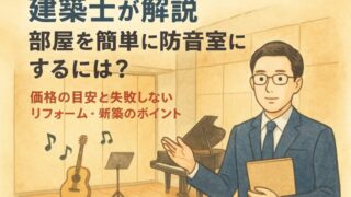 いえのキホン 🎶【建築士が解説】部屋を簡単に防音室にするには?価格の目安と失敗しないリフォーム・新築のポイント✨ 防音室 作り方|部屋を簡単に防音にする方法を建築士が解説🎶 リフォーム・新築での防音扉・吸音材・窓・空調のポイントや費用目安まで詳しく紹介✨ 2025.10.03 いえのキホン