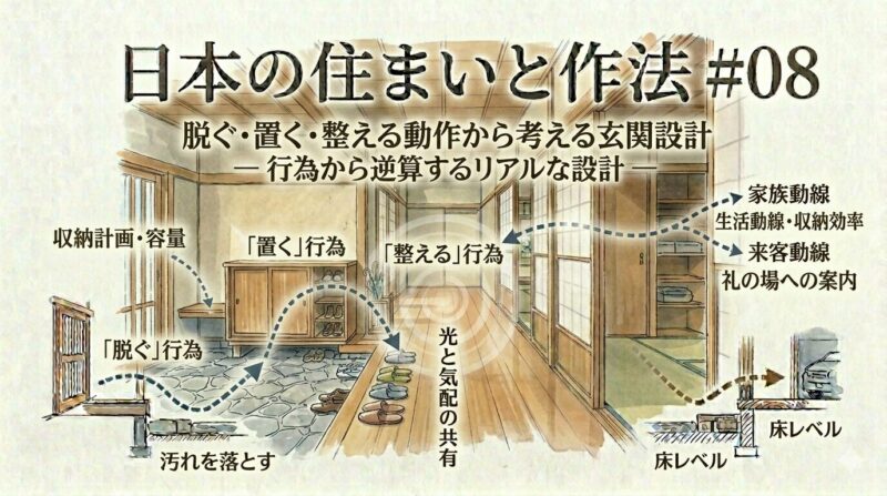 🏠📐✨ 日本の住まいと作法 #08👟📦 脱ぐ・置く・整える動作から考える玄関設計― 行為から逆算するリアルな設計 ― 👓✨