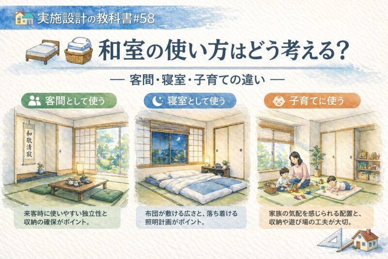 🏠📐✨ 実施設計の教科書#58🛏️🧺 和室の使い方はどう考える?― 客間・寝室・子育ての違い ― 👓📐