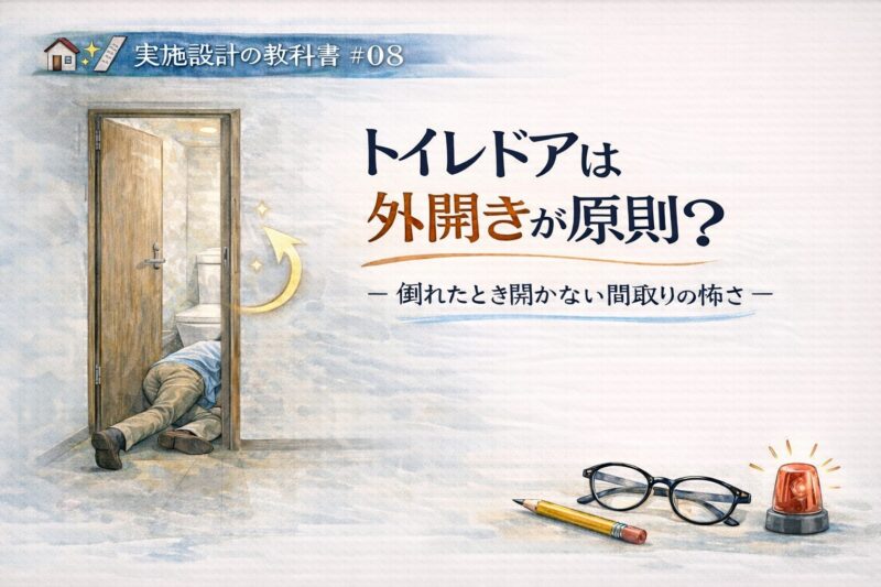 🏠📐✨ 実施設計の教科書#08🚪✨ トイレドアは外開きが原則?― 倒れたとき開かない間取りの怖さ ― 👓⚠️🚨