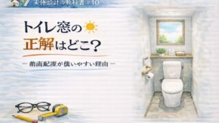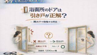 いえのキホン 🏠📐✨ 実施設計の教科書#16🚪🪞 洗面所のドアは引き戸が正解?― 開き戸で後悔する理由 ― 👓📏